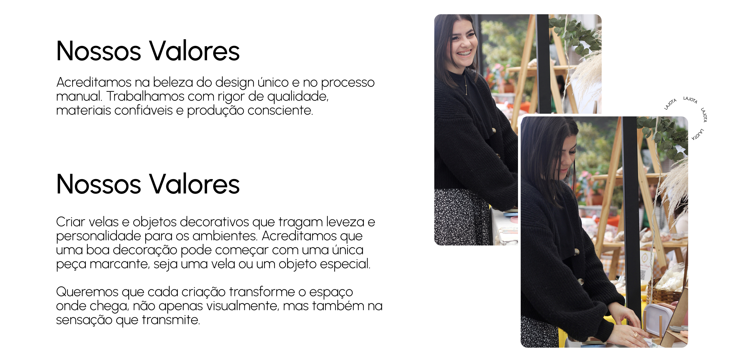 A Lajota é uma marca brasileira que começou com foco em design de interiores, evoluiu para peças feitas com resina ecológica e, hoje, tem como essência a criação de velas decorativas.
